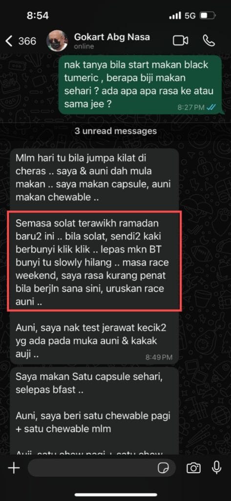 Kebanyakan pengguna melaporkan kesan positif dalam 2-4 minggu penggunaan konsisten. Untuk kes kronik, disyorkan penggunaan selama 3 bulan untuk hasil optimum.