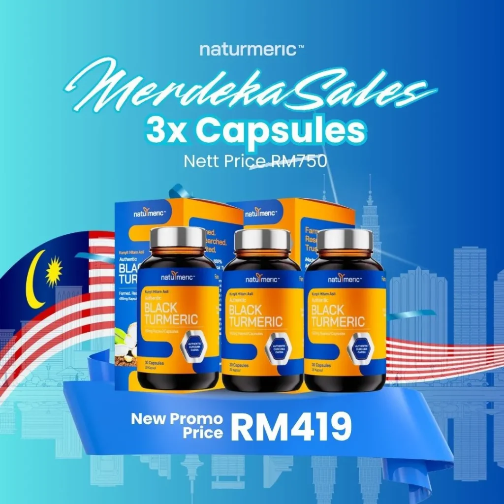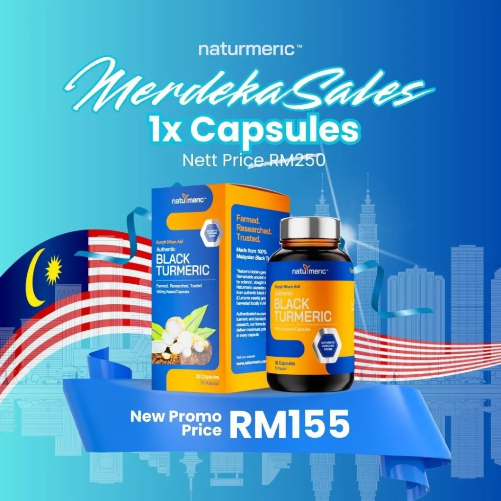 Black Turmeric dalam NATURMERIC mengandungi lebih kurang 10x lebih banyak curcuminoid berbanding kunyit biasa, menjadikannya lebih berkesan untuk melawan keradangan, sakit sendi, dan menurunkan asid urik.